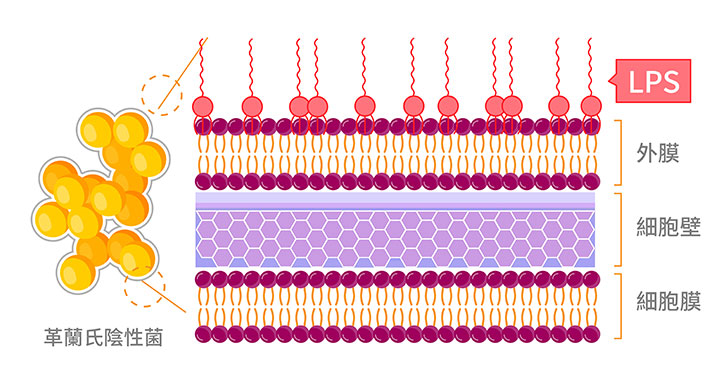 LPS脂多醣又稱為「醫學級免疫維他命」,是革蘭氏陰性細菌的成分,附於革蘭氏陰性菌細胞壁的外膜。而最為人熟識的生物活性是活化巨噬細胞,能夠增強抵抗感染、傷口癒合和代謝調節中功能。