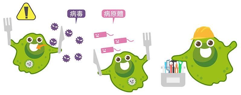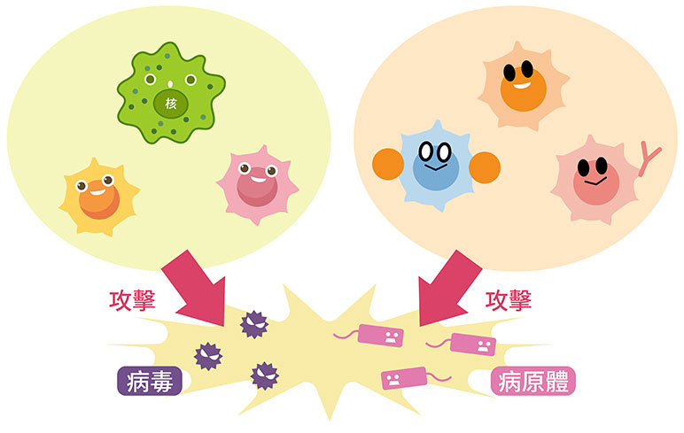 「免疫力」的功能不只限於保護身體免受外來感染,而且是一種維持人體健康的系統。免疫系統有兩大功能:尋找並清除外來物/廢棄物,包括致病細菌、病毒與體內產生的廢物,例如死亡細胞、變性蛋白質和異細胞,以及修復受損部位。